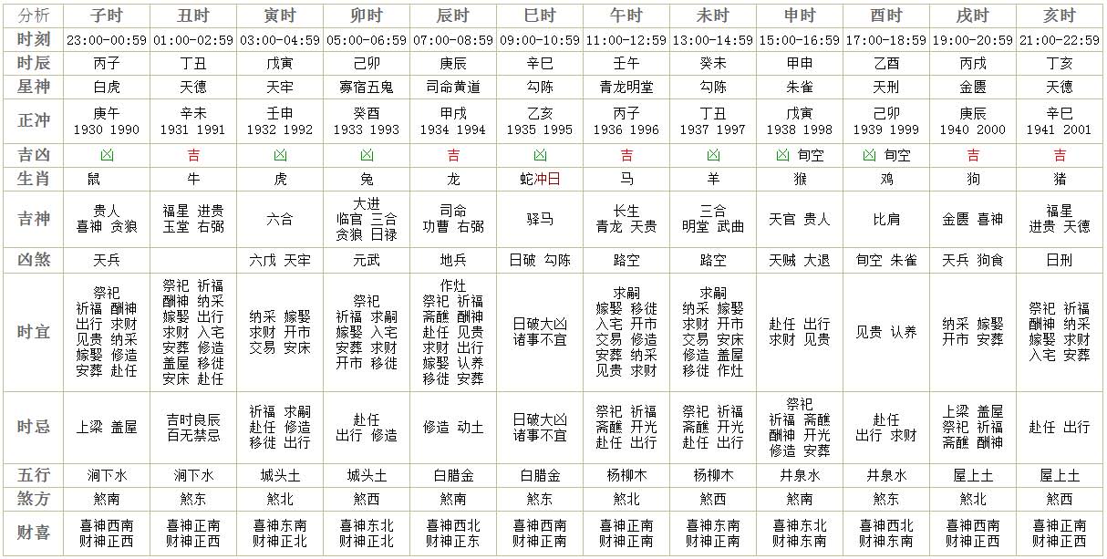 宜:纳采,祭祀,祈福,求嗣,斋醮,出行,起基,盖屋,定磉,安门,入殓,安葬