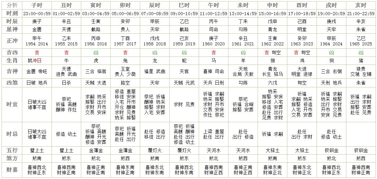 宜:嫁娶,祭祀,祈福,求嗣,开光,入宅,移徙,安床,修造,动土,进人口