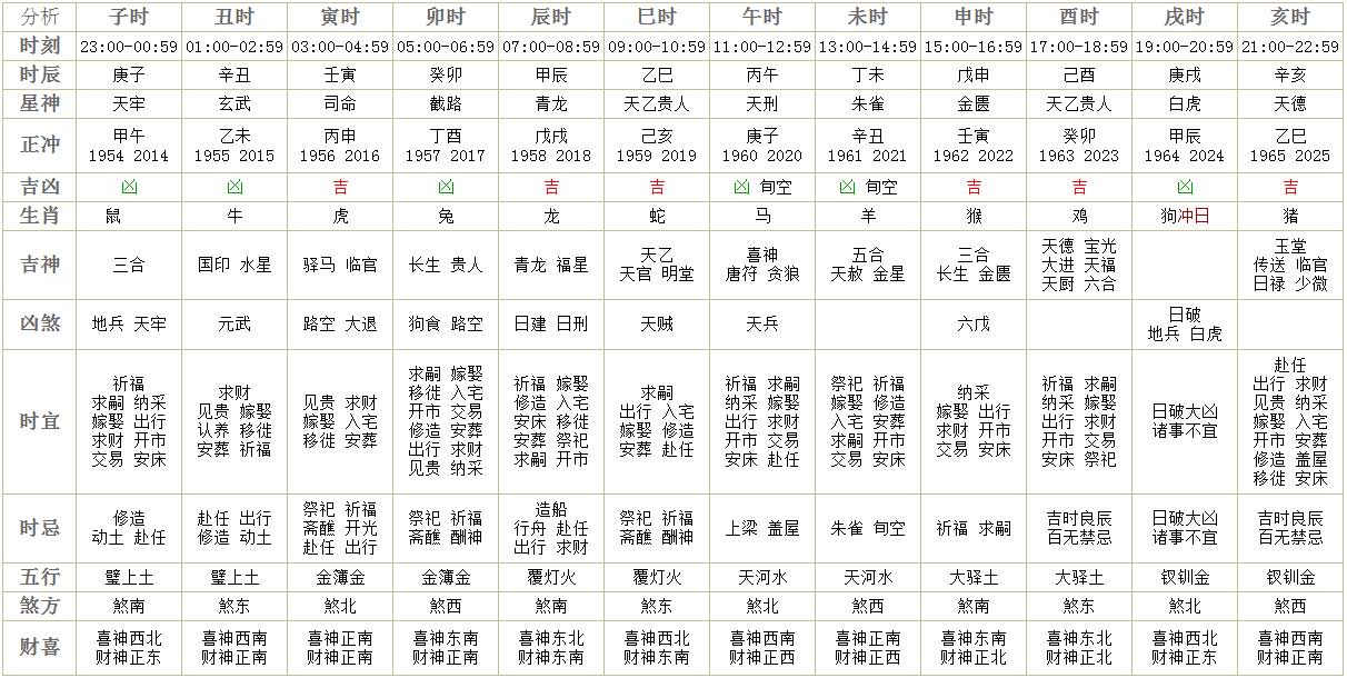 忌:嫁娶,动土,造船,开池,掘井,出行,修造,入宅,上梁,移徙,安葬,破土,作灶,开市
