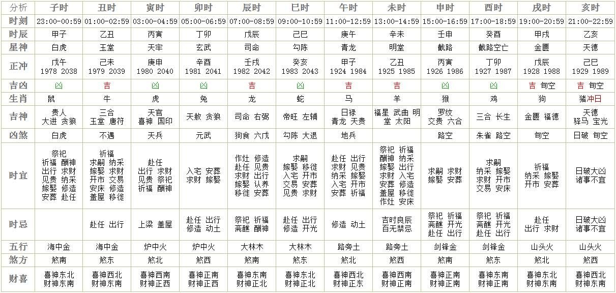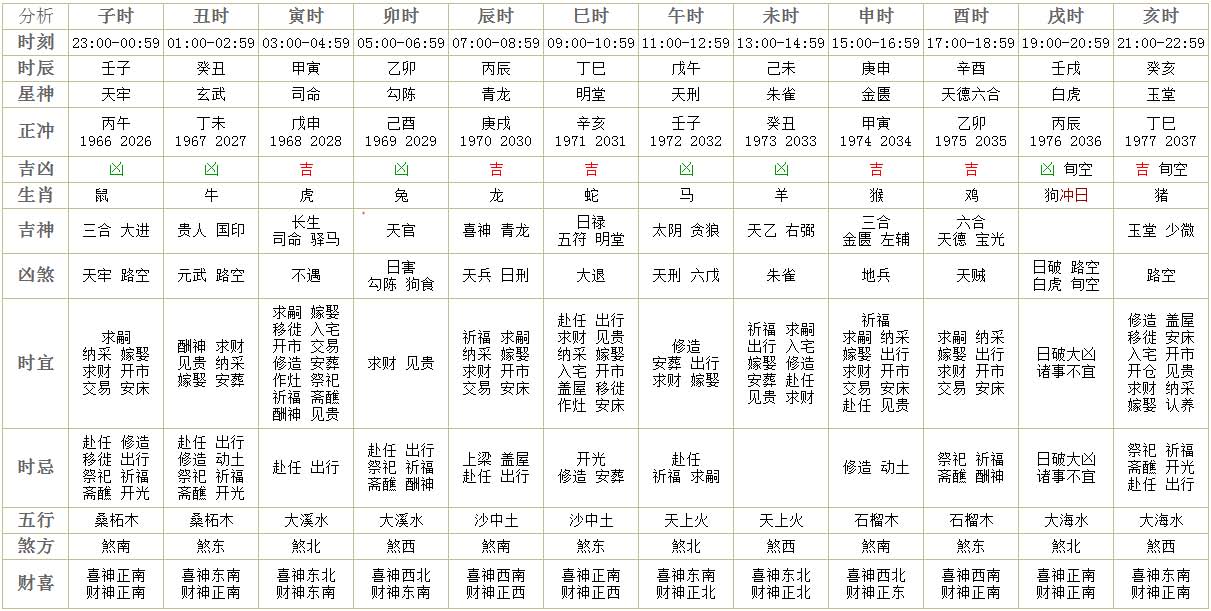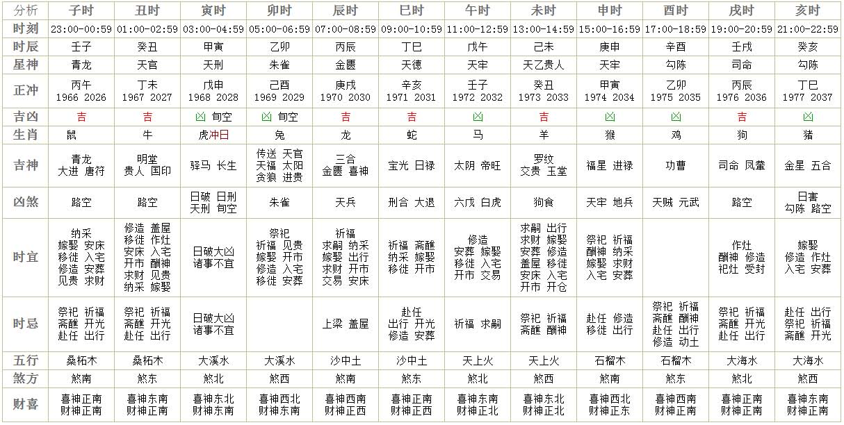 十二时辰详情: